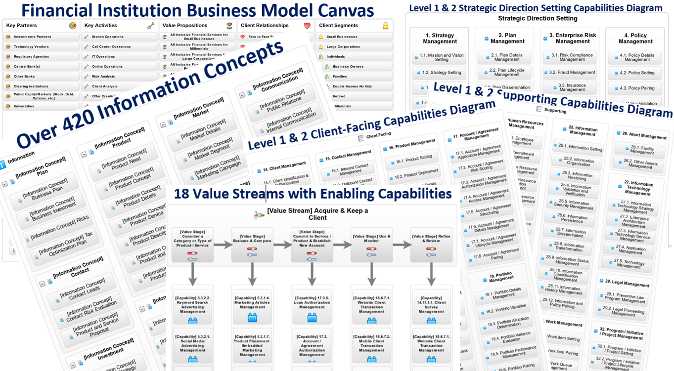 - plus 420 concepts d'information, plusieurs liés aux capacités métiers;